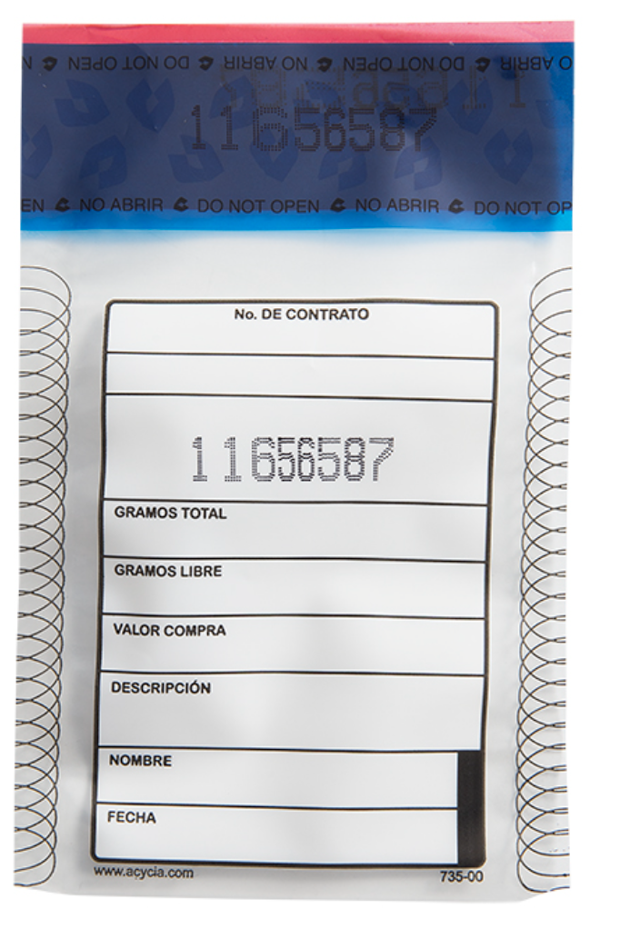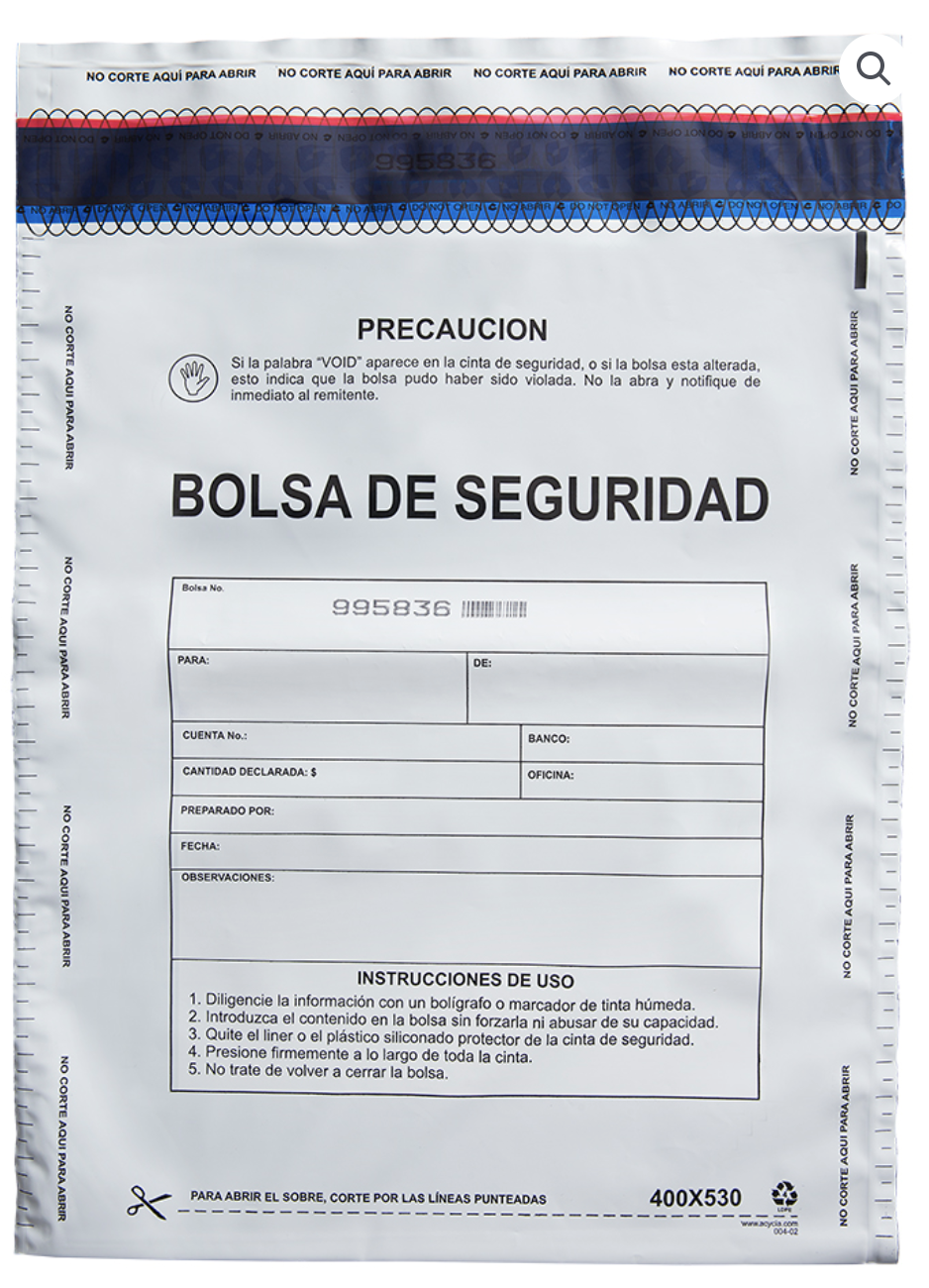 usos de bolsas de seguridad: bancos, casas de empeños, joyerias, evidencia policial, medidores eléctricos, documentos confidenciales
